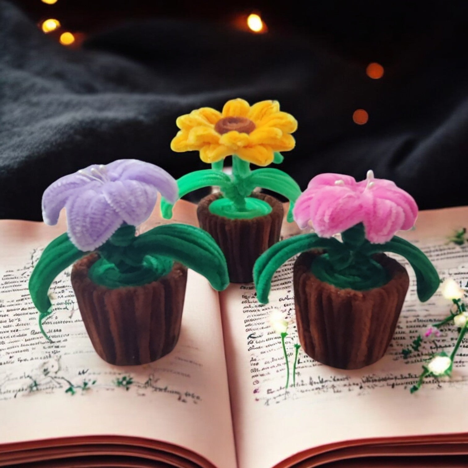 Each bloom is handmade with love and a velvety finish that’s soft to the touch and beautiful to the eye. These fuzzy little flowers make the perfect gift set or add a pop of color to your own shelf, desk, or hamper.