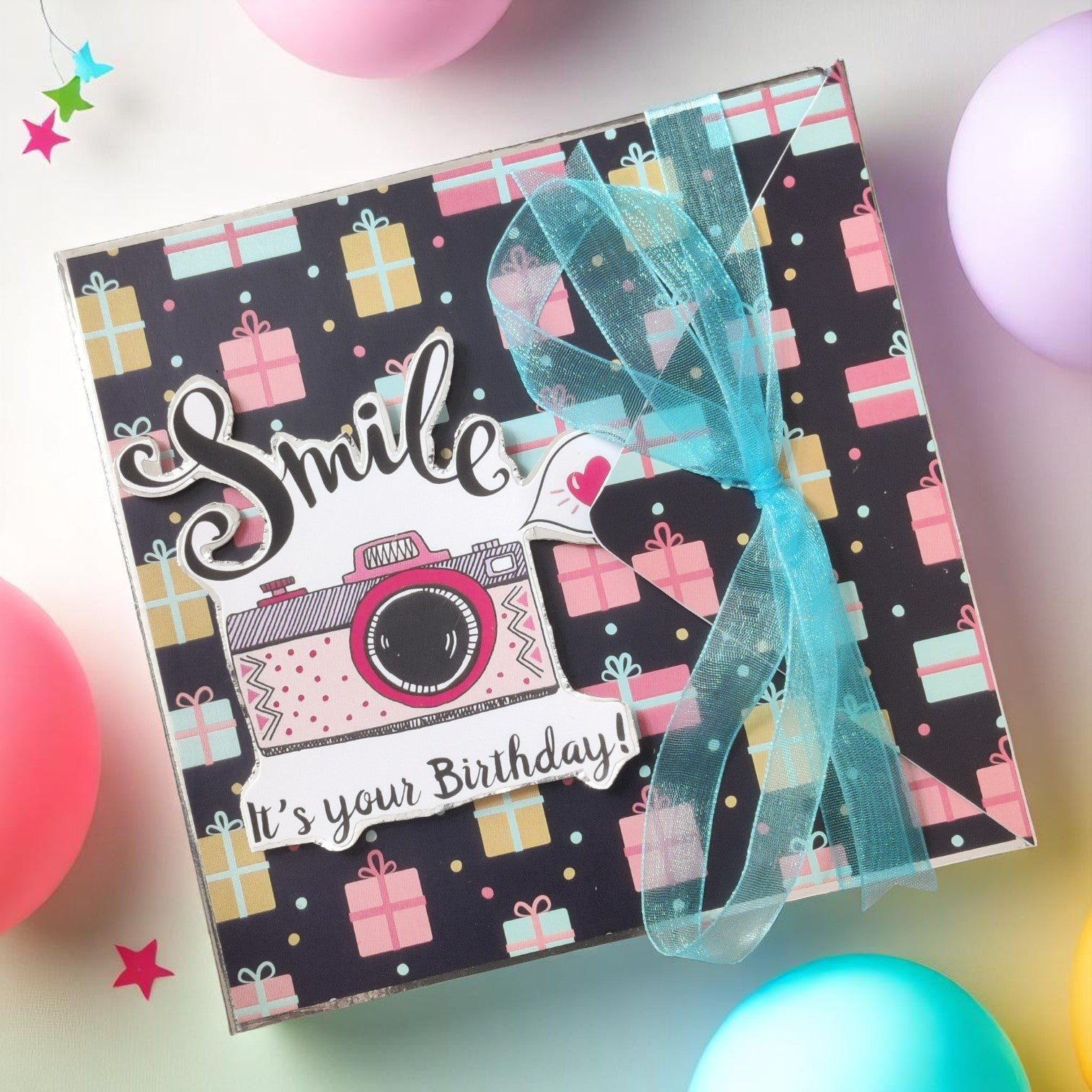 Relive the best days together with this scrapbook card featuring 25 personalized photo slots. A special birthday keepsake they’ll treasure always.