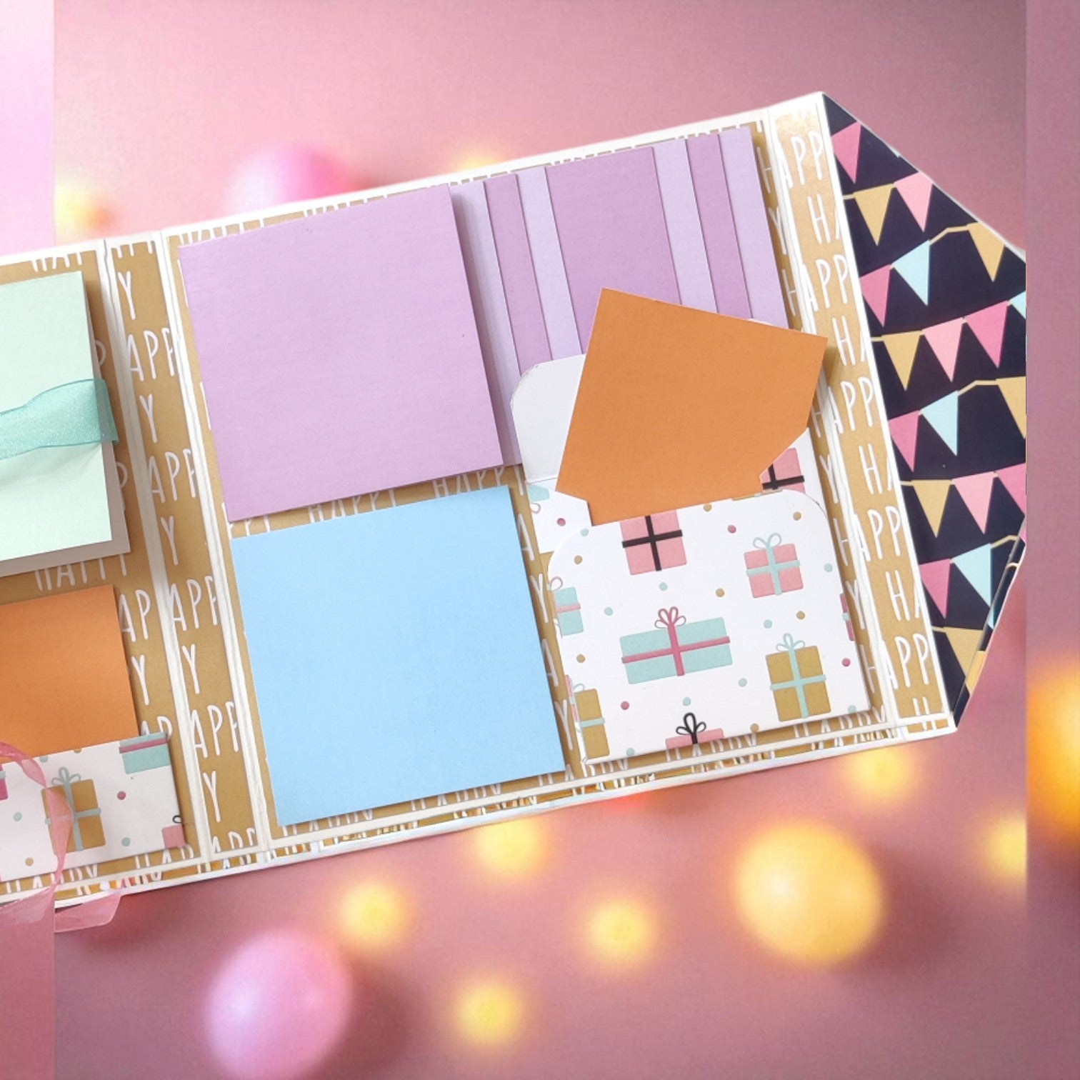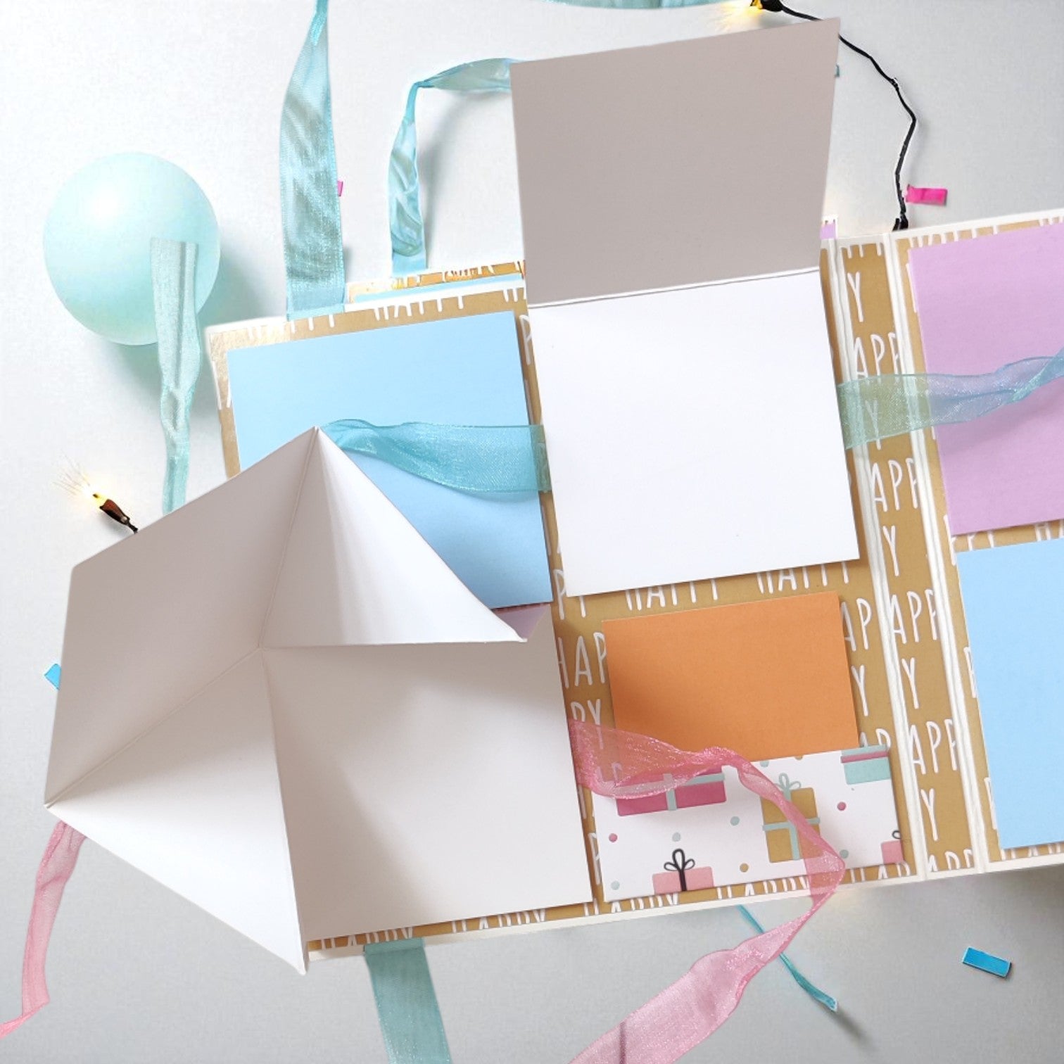 Handmade and heartfelt, this unique birthday card includes 25 personal photos and memory elements for an emotional unboxing experience.